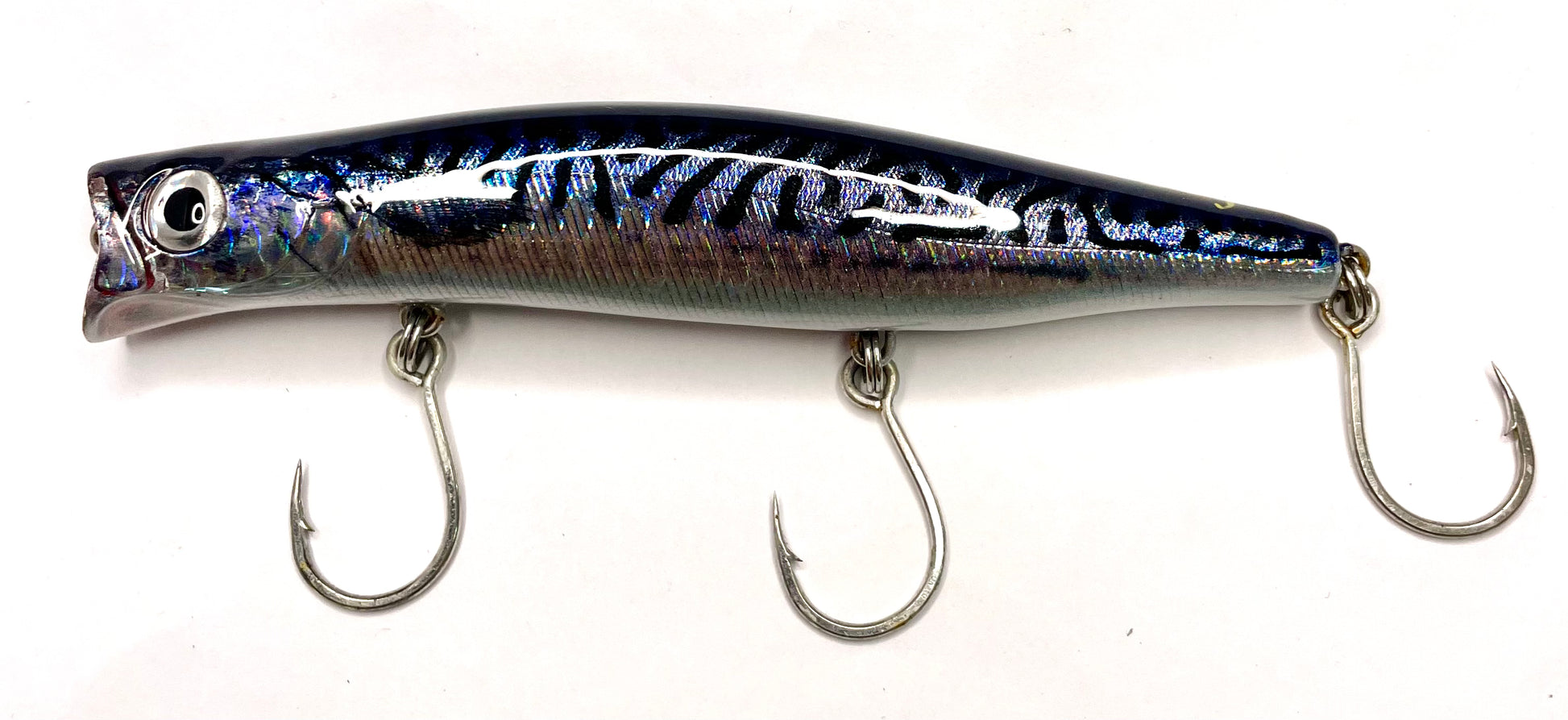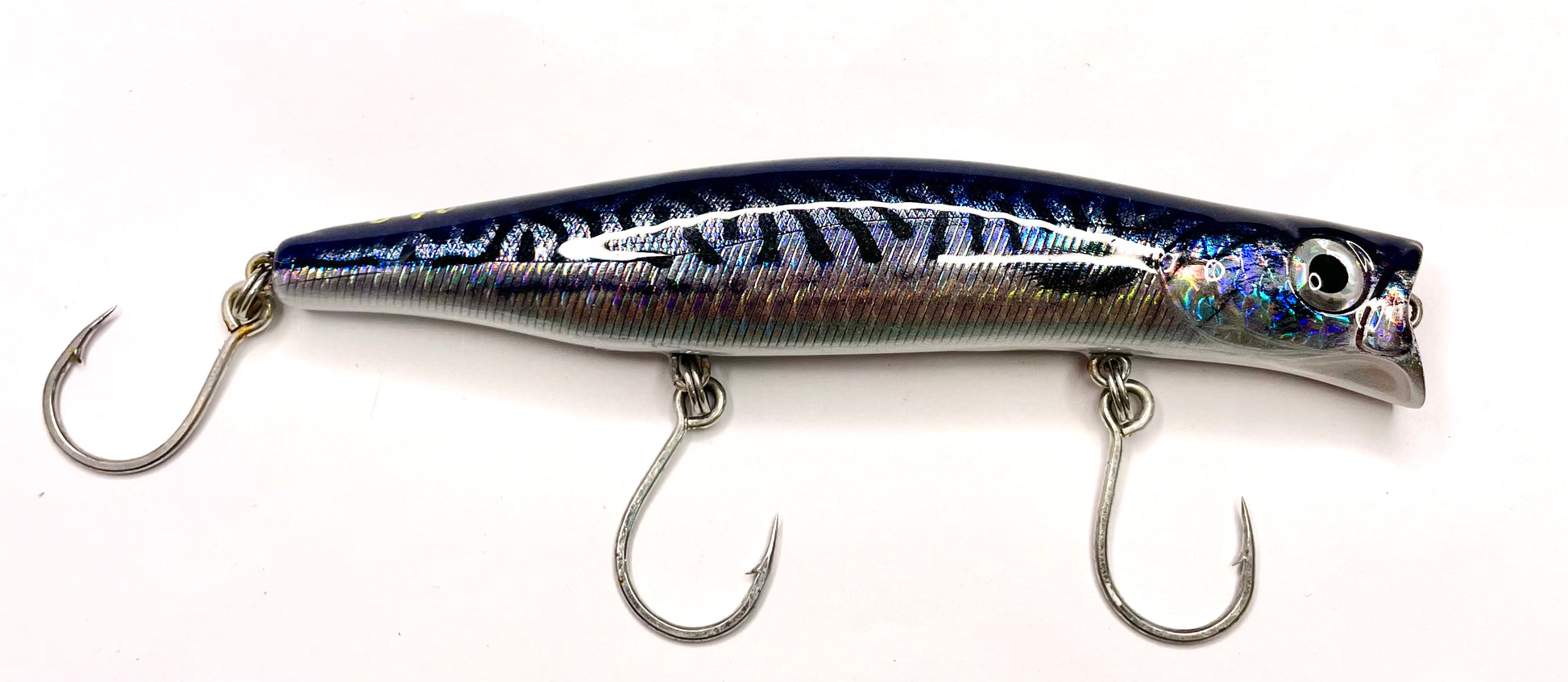 This shallow diving lure has a long cast system built inside and a realistic mackerel pattern on the outside.
